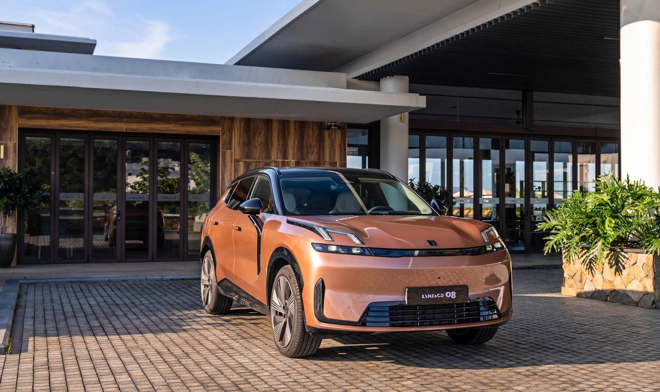Ngay từ cái nhìn đầu tiên, Lynk & Co 08 gây ấn tượng mạnh với ngôn ngữ thiết kế đặc trưng của Lynk & Co. Phần đầu xe nổi bật với cụm đèn LED ban ngày tách tầng, lưới tản nhiệt tối giản nhưng sắc sảo, tạo cảm giác tương lai và công nghệ.