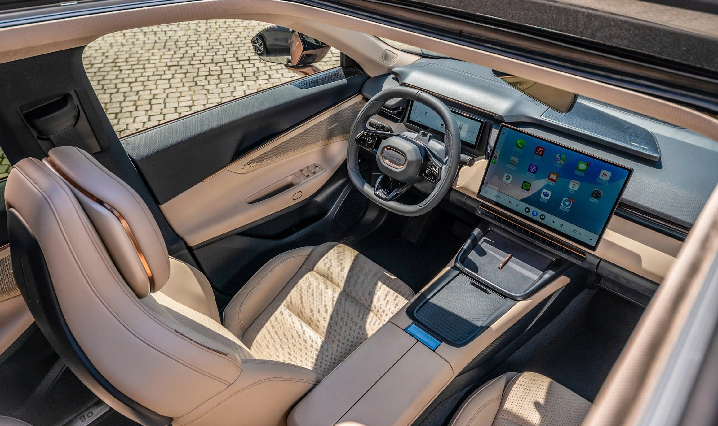Bước vào khoang cabin, Lynk & Co 08 mang đến trải nghiệm công nghệ hiện đại với màn hình trung tâm cỡ lớn, giao diện trực quan, hỗ trợ kết nối thông minh. Không gian nội thất được hoàn thiện bằng vật liệu cao cấp, thiết kế tối giản nhưng sang trọng.