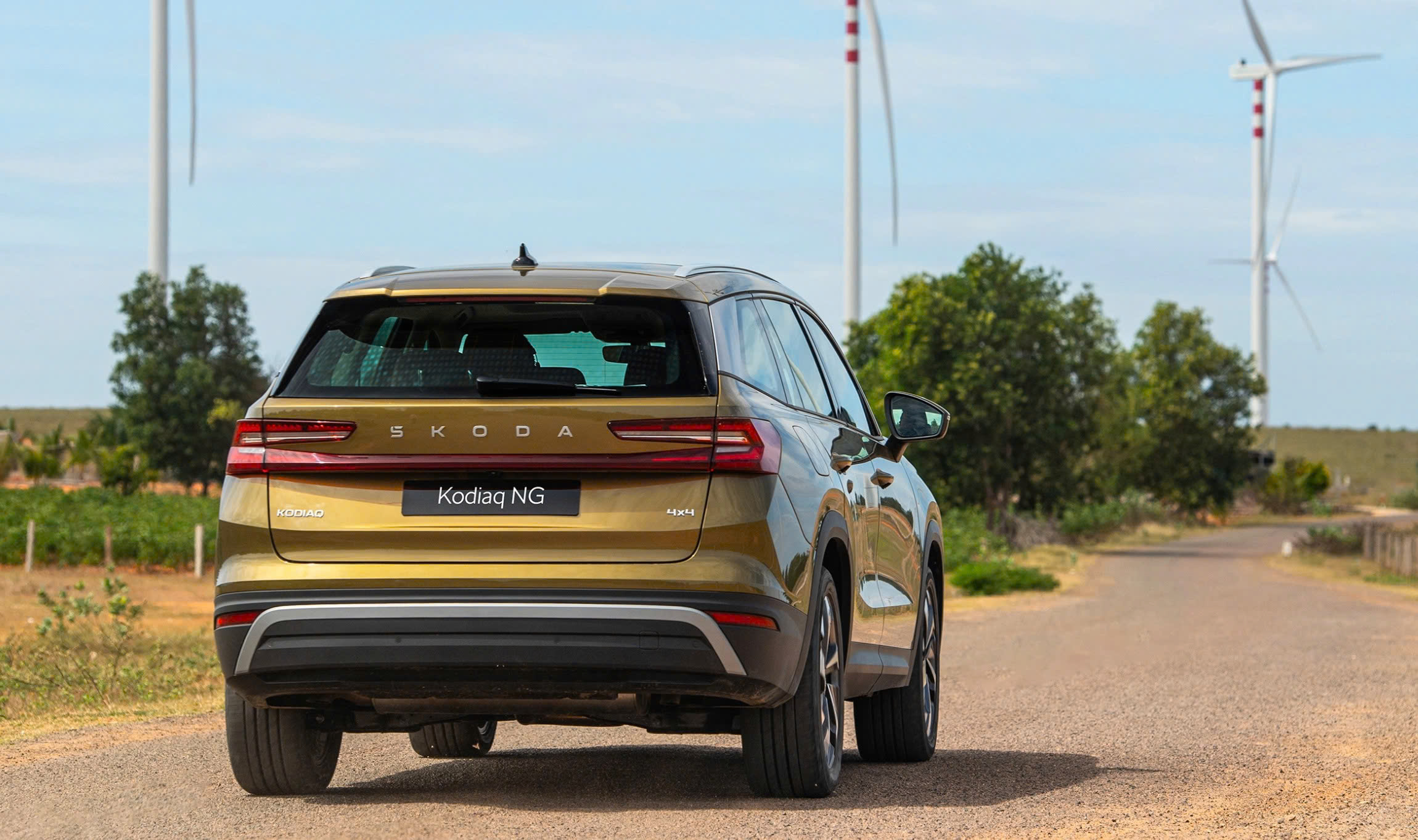 Về ngoại thất, Skoda Kodiaq gây ấn tượng với thiết kế mạnh mẽ và sang trọng. Lưới tản nhiệt đặc trưng dạng nan đứng viền chrome, kết hợp cùng cụm đèn pha LED Matrix sắc sảo, tạo nên vẻ hiện đại và tinh tế. Thân xe sở hữu các đường gân dập nổi dứt khoát, toát lên phong thái vững chãi và đậm chất SUV châu Âu. Bộ mâm hợp kim 18–19 inch cùng gầm xe cao 192 mm giúp Kodiaq tự tin trên cả đường phố lẫn địa hình phức tạp.